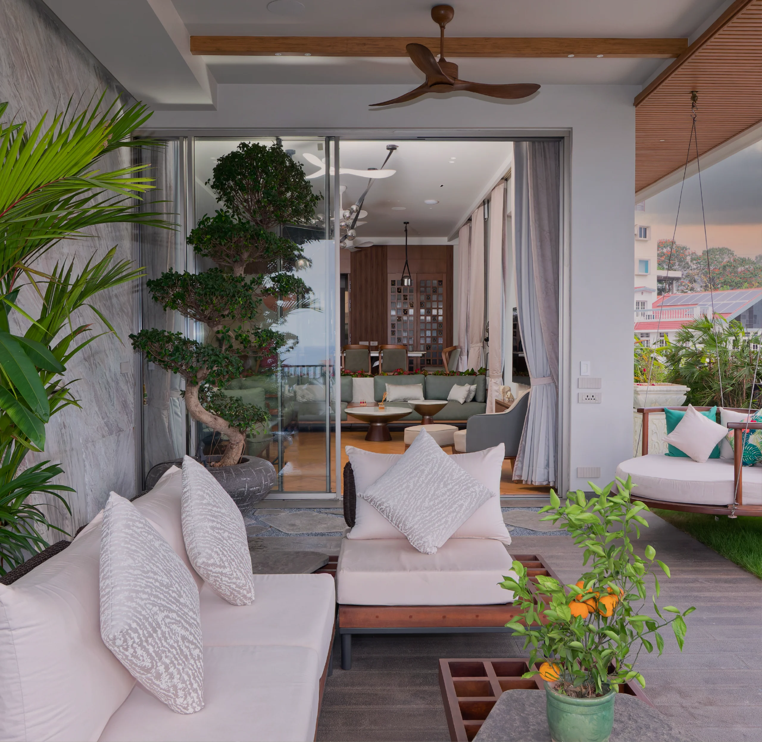 Located in Vizag, Andhra Pradesh, this building features a simple circular façade with vertical greenery and perforated walls that brings in natural light and air. Open balconies and clean lines create a modern look. People from different age groups and professions live together here, making it a calm and practical community.